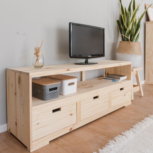 Mesa Lcd Fan 120 Con Estante y cajon Abajo Encerada