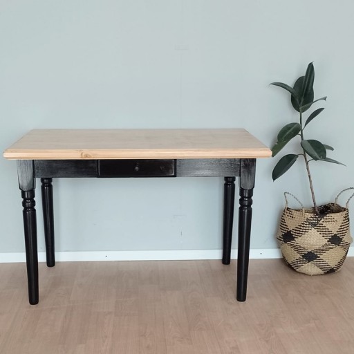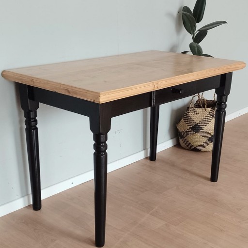 LTC! Mesa Comedor Country 120 Patas Torneadas Negro Y Tapa Teñido